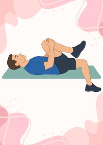 • کشش زانو به سینه برای کاهش فشار روی کمر.